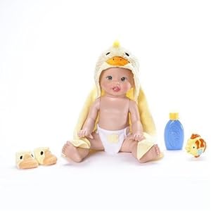LITTLE MOMMY BABY BATH Doll Splish splash - girls can give their adorable baby doll a bath with her completely submersible body and play accessories. This sweet baby doll comes with a cozy terry hoodie towel and slippers, play bubble bath and bath toy. Just add water! Ages 2 and over. Splish splash—girls can give their adorable baby doll a bath with her completely submersible body and play accessories. This sweet baby doll comes with a cozy terry hoodie towel, booties, play bubble bath and bath toy. Just add water! Recommended Ages: 2 years & up